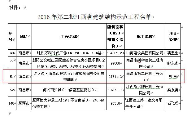 公司匠人聚?南昌市建筑設(shè)計(jì)研究院有限公司總部基地工地榮獲2016年第二批江西省建筑結(jié)構(gòu)示范工程稱(chēng)號(hào)