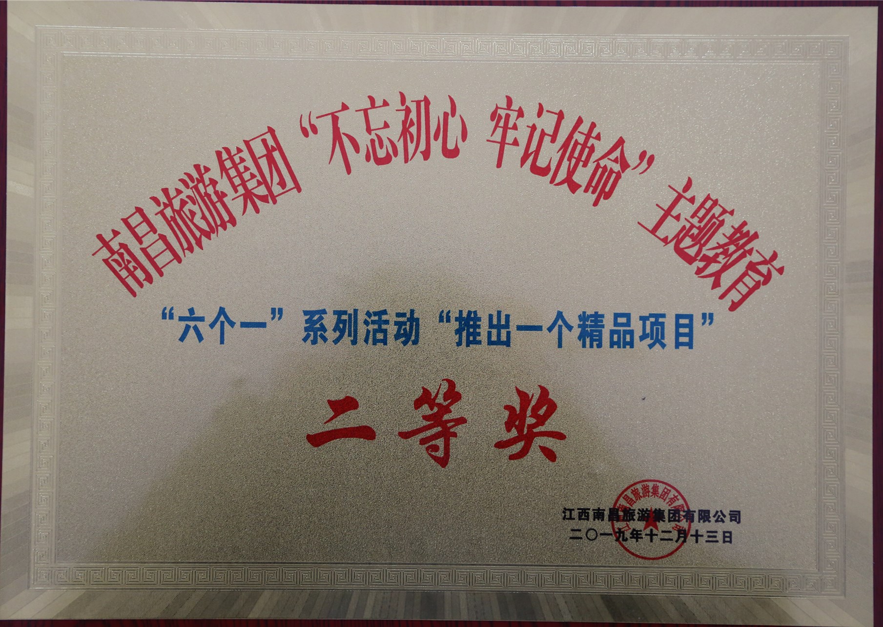 12月13日下午,南昌旅游集團在滕王閣會見廳召開“不忘初心、牢記使命”主題教育“六個一”活動暨董事長獎勵表彰大會,我公司參評的“推出一個精品項目”榮獲二等獎,“突破一個基層難點”榮獲三等獎,“樹一個模范人物”、“講一個初心故事”、“擦亮一個服務(wù)窗口”、“創(chuàng)一個先鋒黨支部”榮獲優(yōu)秀獎。另外,我公司參與合作的“繩金塔項目EPC招標(biāo)攻堅團隊”榮獲董事長特別獎。
