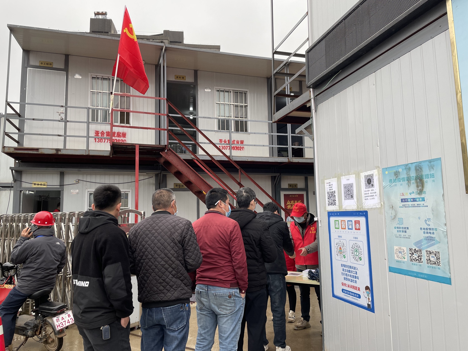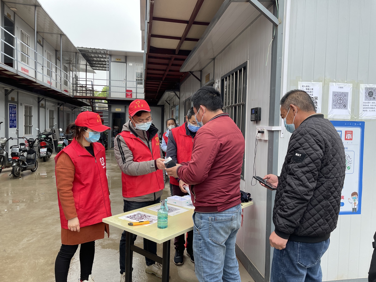 (繩金塔張家山社區(qū)) 一個支部就是一個堡壘。公司第一黨支部將工作前移到疫情防控一線,以黨建共建對象張家山社區(qū)為點,組織黨員和入黨積極分子深入社區(qū)防控一線,開展志愿者活動,對居民進行防控知識的宣傳教育,在核酸檢測點,幫助疏導交通、維護秩序,指導居民檢測,動員廣大居民積極參與全員核酸檢測,以實際行動投入到防控一線。公司繩金塔民俗風情街工程項目臨時黨支部堅持一手抓疫情防控,一手抓工程項目建設。成立了黨員先鋒崗,主動扛起防疫責任,在做好工地防控設施圍護的前提下,堅持每天做好進場人員的體溫檢測,教育工地人員注意個人防護,定時對工地進行殺菌消毒。從而,保證了工程項目在疫情期間不停工、不停產(chǎn) ,體現(xiàn)了黨旗在防控一線高高飄揚。